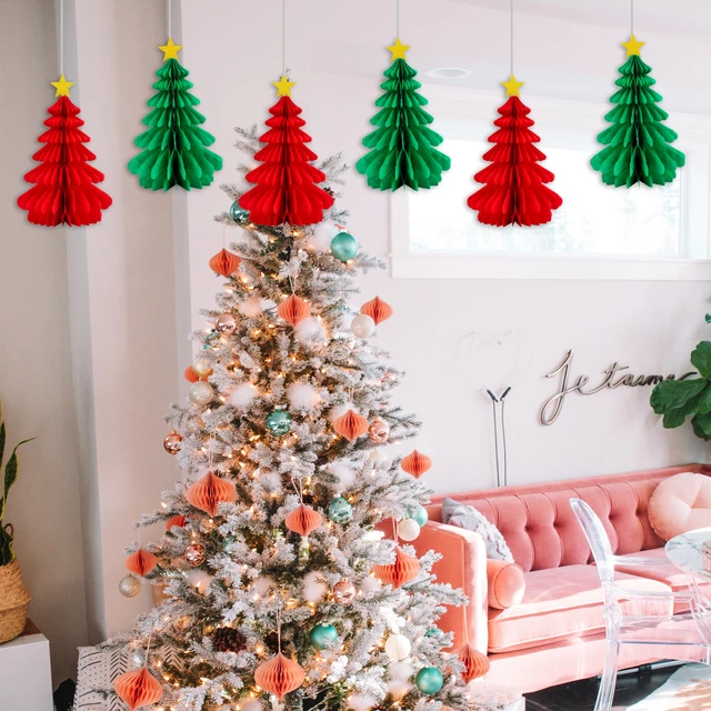 2023 Christmas Tree Honeycomb Pendant Paper Red Green DIY Xmas