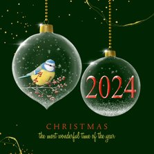 Kerstkaart glazen kerstbal met vogel 2024 | Kaartje2go